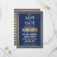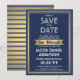Convide a família e os amigos para uma elegante cerimônia de mitzvah bar e comemoração para ele com esta folha de ouro azul, branca e falsa marinho para salvar o convite de data. Todo texto é simples de personalizar, portanto pode incluir qualquer texto sobre o serviço, leitura de Torah e festa. A design apresenta uma estrela de folha metálica falsa de David, a deco de na moda-arte inspirou tipografia e a caligrafia moderna. Mazel Tov!