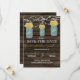 Rustic Barnwood, luzes de cordas balançando com flores amarelas em um casamento Mason jar Salve a data. Produtos correspondentes também disponíveis.