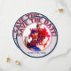 Casamento de baseball com Cartões salve a data-3. O lado frontal da placa é uma inserção/quadro de fotos. Anéis internos e externos azuis com uma foto personalizada no centro. Remova minha inserção fotográfica e substitua por uma foto sua. O texto do vidro vermelho e azul decorativo circula ao redor do topo e diz: SALVE A DATA. Mais texto se senta na parte inferior e diz: A DATA DE NASCIMENTO DOS CASAIS. Edite o texto para datas, os nomes dos casais, etc. Eliminar/limpar o texto se não for pretendido. O fundo exterior da jante é vermelho, branco e azul de beisebol. Na parte traseira do cartão, você tem o mesmo texto no topo. O texto de baixo diz: "A HOME PLATE WEDDING". Dois morcegos de madeira, vermelhos e azuis, sentam à esquerda. O fundo central é um beisebol branco com costura vermelha. Curvas decorativas de texto ao redor da bola e diz: Ele e HER (seus nomes) estão se elevando ao prato de casa e batendo 1000 que seu amor durará para sempre. As equipes se fundirão em uma...seu encontro. Por favor, juntem-se a nós em comemoração enquanto juramos o nosso amor um pelo outro. Os convites temáticos do casamento de baseball estão disponíveis em várias combinações e padrões. Estes convites incluem também os envelopes.