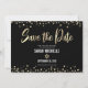Certifique-se de que todos os seus amigos e parentes serão capazes de celebrar o marco da sua filha Bat Mitzvah! Envie este cartão de anúncio estonteante, moderno, "Salve a Data". Escrita gráfica de caligrafia de folha de ouro, Estrela de David, e confetti, sobrepõem um fundo preto, rico e dramático. Sua mensagem personalizada sobrepõe um fundo de ombre dourado falso no verso. Personalize o texto personalizado com o nome e a data de Bat Mitzvah. Garantido para adicionar diversão na moda à sua ocasião especial! Basta digitar o nome e a data da sua filha, e a mensagem personalizada, e você pode personalizar facilmente este cartão de anúncio Bat Mitzvah "Salvar a Data". Por favor, me mande mensagens com quaisquer perguntas ou solicitações.