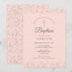 Um convite elegante de batismo ou batizado com poeira de estrelas prateada delicada. Você pode personalizar com os detalhes da sua celebração especial de batismo ou batizado em tipografia sofisticada em um fundo rosa bege. Criado por Thisisnotme©