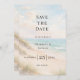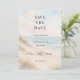 A watercolored sandy beach, sand dunes, ocean waves background. Personalize and add a date and your names.