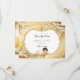 Linda menina com seu vestido batizante e colar de cruz de ouro dormindo em um travesseiro de ouro. O fundo é ouro com rolo prateado e ornamento cruzado. O dorso é enfeitado com fita branca de cetim e cruz.