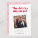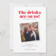 Este cartão de salvar a data de casamento engraçado apresenta a frase "As bebidas são por nossa conta - a ressaca é sua" - certamente fará seus convidados rirem e terão uma prévia da festa de casamento divertida que não vão querer perder. Personalize-o! Altere as cores e as fontes para combinar com o estilo do seu casamento!