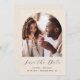Este simples e minimalista Cartão Salvar a Data apresenta um boho de fotos acima das palavras "Salvar a Data" em um elegante roteiro preto, seguido pelos nomes do casal, data do casamento e cidade em sans serif em um fundo bege. Adicione uma mensagem mais detalhada com informações adicionais sobre o contrário.