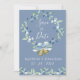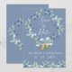 Linda grinalda floral azul com bela escrita em branco. O azul empoeirado com a impressão azul apenas define o tom para uma elegância simples.
