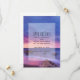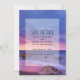 Salve o cartão de data com uma fotografia adorável que apresenta cores marcantes de roxo, azul e rosa no pôr do sol. Uma bonito linha costeira espalhada por rochas.