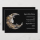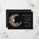 Salve o cartão de data com uma bela ilustração. Um rosto feminino na lua rodeado de flores.