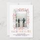 Berries e saímos do casamento no inverno da borda. Salve o anúncio da Data. A frente apresenta um quadro feito de bagas e folhas, o texto "Salvar a Data" em uma fonte colorida e sua foto. A parte de trás é de cor sólida e farinhenta.