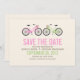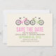 Na moda e convites divertidos apresentam uma bela ilustração de duas bicicletas em cores pastel macio perfeito para qualquer casamento de primavera ou verão. Use-os para casamentos, chás de panela, festas de solteira, salve os anúncios de data, festas de noivado e muito mais!