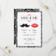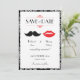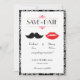 Lábios vermelhos voluptuosos e um bigode elegante são as principais estrelas deste convite de casamento moderno. O padrão damasco no fundo adiciona um toque de classe.