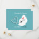 Um cartão de salvar a data do casamento divertido e elegante para casais que se casam no exterior nas Maurícias, mostrado em uma silhueta de mapa branco sobre azul turquesa com corações de amor vermelhos, silhueta de avião e formato de coração branco girando