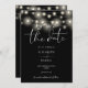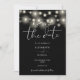 This elegant black and white save-the-date invitation, featuring pretty string lights, can be personalized with your information in chic typography with your wedding website QR code and details on the reverse. Designed by Thisisnotme©