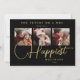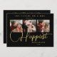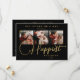 Black Exquisite Sophisticated Wedding Christmas 3 Photos in Fake Gold Holiday Card as a Save the Date Card.