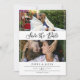 Double sided save the date card with two photos in a clean collage on one side and a larger photo on the other. Save the Date is written in a romantic black script. Add your names and wedding information in a minimalist and elegant typography design. On the back, you can add your wedding website too.