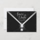 Defina o tom da sua celebração com este modelo de Black Tie Diamond Save the Date. A frente apresenta uma tipografia elegante sobre um rico fundo de damasco preto, acentuado com um gráfico de gravata borboleta onde dois diamantes cintilantes formam o nó. Uma moldura prateada elegante transforma o design em uma silhueta de taça de martini com um caule de diamante — um símbolo único de sofisticação e celebração.