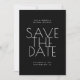 This modern save the date wedding card features a black background on both the front and back, creating a clean, cohesive look with strong contrast and minimalist appeal. The simple typography stands out clearly, making the announcement feel confident, contemporary, and well structured. The back side includes space for a personal photo, your wedding website, and a QR code, giving guests a quick and convenient way to access important details and updates. Ideal for modern, evening, and city weddings. This save the date card is perfect for couples who prefer bold simplicity and timeless design. Personalize it with your names, wedding date, location, photo, and custom link to create a clear and memorable announcement. Available as both a printed card and a digital download.