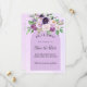 Um moderno e elegante Salve a Data para um casamento. Violeta de cor d'água, fundo de lavanda e uma armação de arco. Decorado com flores violetas e roxas. Personalize e adicione uma data e nomes. O texto: Salvar a Data é gravado com um script de estilo com letra de tendência grande. Voltar: adicione sua url ao seu site de casamento para obter mais informações.