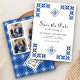 Celebrate your big day with the timeless beauty of blue and black Ukrainian embroidery. This save the date features an authentic folk-inspired design that instantly adds warmth, tradition, and elegance to your celebration. Fully customizable, add your names, dates, and personal details effortlessly.