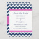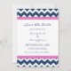 Salve o cartão de anúncio com elegante e contemporâneo azul marinho escuro, cor-de-rosa brilhante fuchsia e padrão zigzags moderno branco. Personalizável com seus detalhes de casamento, disponível em uma grande variedade de produtos de casamento correspondentes. Entre em contato conosco para solicitar uma alteração de cor ou um produto personalizado.