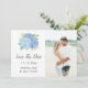 Estes cartões salve a data apresentam um design floral azul de hydrangea watercolor. Eles fazem parte de uma coleção que inclui um cheio de convites para casamento e artigos de papelaria. Personalize-os com o seu próprio texto e fotografia. Visite nossa loja para ver o cheio de itens que você pode personalizar para o seu casamento.