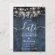Reserve A Data Blue Rustic Wood String Luzes Barn Boho Casamento