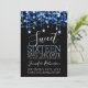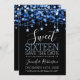 Blue & Black Sweet 16 Birthday Sparkly String Lights "Save the Date" (Salve a data) modelo com endereço da festa e detalhes de RSVP.