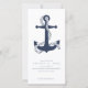 As peças desta elegante suíte de náuticas apresentam estilo náutico clássico com uma aparência limpa e minimalista. Ondas estilísticas em tons de aqua a azul marinho e uma ilustração de ancoragem e corda fornecem sotaques exclusivos. Uma grande imagem de âncora em azul marinho, sobre a data do casamento e detalhes para dar a este Cartão Salvar a Data um apelo impressionante. Perfeito para casamentos de iates, barco, praia ou destino de verão. Procure ID836 para ver este conjunto completo e outros com sotaques de elementos marinhos alternativos.