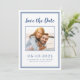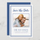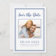 Moderno e simples Salve o design de fotograma de data apresenta sua imagem de noivado favorita emoldurada por um quadro azul clássico em um fundo branco nítido. Personalize e compartilhe seus detalhes de noivado e casamento com seus convidados em letras azuis e roteiro. O design é completado com um quadro duplo moderno em azul. O design de configuração de retrato paisagístico (a largura é maior que a altura) funciona perfeitamente com fotos próximas ou retangulares de você e do seu noivo em um local cênico. Use sua imaginação e escolha seu favorito! Entre em contato com invitationsuites@gmail.com com perguntas ou solicitações personalizadas.