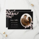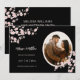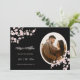 This Save the date card features beautiful dusty pink cherry blossoms and a custom photo on a black background.