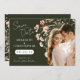 Anuncie seu grande dia com este romântico Guarde a Data com flores silvestres de cor-d-água embaçadas, fontes modernas elegantes e espaço para sua foto favorita de noivado. O fundo verde-oliva profundo adiciona um toque sofisticado, enquanto os florais brancos trazem uma vibração suave, de jardim — perfeita para casamentos outono rústicos, ao ar livre ou ao ar livre. Elegante Green Blush Florals Foto de casamento Salve a data com fotos de casal e fundo verde escuro. Belo e elegante pincel cor-de-rosa e bege-d-água flores silvestres, botânicos e foto de casal. Estas florais de aquarela definidas contra um fundo verde-escuro são perfeitas para casamentos de flores silvestres.