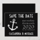 Boat Anchor Save The Date (Black)... Estes anúncios de data divertidos e náuticos são a forma perfeita para que amigos e familiares saibam salvar a data do seu próximo casamento. Perfeito, guarde as datas de um casamento temático náutico, um casamento em um barco/iate ou um casamento de destino tropical. Consulte WindyCityStationery.com para ver nossa linha completa de "Boat Anchor", salve as datas em uma ampla variedade de cores, além de carimbos de postagem "Boat Anchor", convites, cartões de agradecimento, etiquetas, adesivos e muito mais.