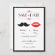 Lábios vermelhos voluptuosos e um bigode elegante são as principais atrações deste convite de casamento sofisticado e moderno.