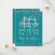 Elegante design de "Festa de 40 Anos de Casamento" com Confetes Prateados de Brilho Falso Teal e texto personalizado com nome e detalhes. Fácil de usar e fácil de personalizar. Compre Hoje!