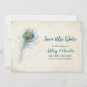 Casamento boêmico salve o cartão de encontro com pena de pavão e letra de chá. Perfeito para casamentos elegantes e outros eventos de estilo vintage.
