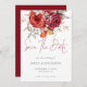 Boho Autumn Florals QR Code Wedding. Florais lindos com uma vibração boêmica em tons de vermelho e laranja no outono e um roteiro elegante para Salvar a Data. O resto do texto que você pode personalizar facilmente com seus detalhes. Adicione seu código QR ao seu site de casamento na parte traseira ou exclua este e o texto na parte traseira, se não for necessário.