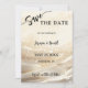 Boho Chic Casamento Salve o cartão de Data com um elegante design de ouro com luzes cintilantes. Na parte de trás está a opção de adicionar sua foto, assim como um modelo de código QR fácil de personalizar.