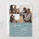 Este código de QR multifoto de teal de seafoam bico, salve o cartão de data é perfeito para um casamento minimalista. A colorida design boêmica verde-azul apresenta uma caligrafia rústica simples com um estilo único, porém clássico, que lembra a praia, o oceano e o litoral de verão. Personalize sua data de salvamento com seus nomes, data de casamento, local, 4 fotos de noivado e um código de QR que liga ao seu site de casamento.