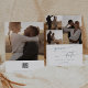 Este código de QR de fotos multicamadas azul azul de boho salve o cartão de data é perfeito para um casamento minimalista. A pálida design boêmica azul e branca, moderna, apresenta caligrafia rustica simples com um estilo único, mas clássico. Personalize sua data de salvamento com seus nomes, data de casamento, local, 4 fotos de noivado e um código de QR que liga ao seu site de casamento.
