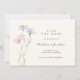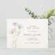 Anuncie seu dia especial com elegância de eterno usando este Cartão de Data de Wildflower Save. Apresentando delicadas flores de aquarelas em tons pastéis macios, este design oferece um toque romântico e refinado. O layout minimalista destaca seus nomes, data do casamento e local em uma tipografia lindamente equilibrada, fazer que seja fácil para os convidados marcar seus calendários.