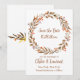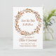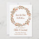 Apresentando nosso Boho Fall Flower Wreath Casamento Salve o cartão de Data. Capture a essência do romance do outono com esta delicada carta com uma coroa delicada, enfeitada com florescências vibrantes. Misturando encanto boêmico e elegância rústica, ele dá o tom para seu próximo casamento, convidando seus convidados a marcar a data e se juntar à celebração. Adote a beleza da estação com este encantador cartão de data que reflete maravilhosamente o seu estilo único e a magia do seu dia especial.