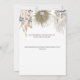 Uma ilustração de uma caveira de veado colocada contra um fundo de respingo de aquarela bege tem um macramê habilmente feito pendurado em seus chifres, que é infundido com penas de pássaros selvagens, folhas e flores. Lindas rosas cor-de-rosa florais e folhagens repousam sobre sua testa e todas estão emolduradas por galhos atados em um quadrado com rosas e grama pampas nas bordas. Modelos de texto marrons em negrito aparecem acima e abaixo dela para a sua redação personalizada. Os cantos superiores traseiros têm penas tribais penduradas, adornadas com buquês de folhagem de rosa e uma folha seca infundida com rosas e folhagens. Ideal para casamentos tribais, country western, rústicos, ao ar livre, boho, florestais e de bosque.