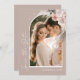 Este Boho Champagne Neutral Pampas Grass Foto Casamento Salve o Cartão de Encontro o ajudará você a compartilhar boas notícias de seu noivado e do próximo casamento. Este estilo minimalista mostra duas fotos em um fundo de tons de champanhe com design de arco e letra moderna de roteiro. Lindas flores de aquarela com grama de mamão e eucalipto acendem o cartão. Personalize com suas próprias fotos e detalhes sobre seu casamento.
