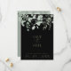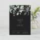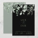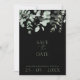 Boho Greenery Black Eucalyptus Casado Salve o Cartão de Data. Imprime estigmaticamente seus convidados de casamento com este cartão elegantemente desenhado para salvar a data do casamento com lindas folhas verdes de eucalipto em um impressionante fundo preto. Este cartão salva-vidas do casamento tem um belo design de folhagem verde, com vibrações rústicas e botânicas, perfeito para o seu casamento rústico, verde ou eucalipto. A disposição mínima e moderna chama a atenção para os arranjos elegantes, verdes, de folhas de eucalipto, sobre fundo negro minimalista com uma delicada fonte verde-escura. Este cartão de salvamento do casamento irá dar o tom para um belo cenário de casamento rodeado por um decoro de casamento verde-prateado, preto ou verde-sábio. Uma adição perfeita a qualquer celebração botânica ou rústica.