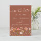 Anuncie seu dia especial com estilo com este Save the Date de casamento Boho Fall Wildflower Meadow Terracotta Rust Beige, uma combinação perfeita de calor outonal, charme rústico e elegância boêmia moderna.