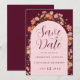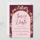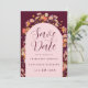 Cartão de Save the Date de Casamento de Outono Arco Boho de Flores Silvestres em Burgundy e Rosa Desmaiado
