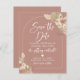 Salve o cartão de noivado de Data em belos tons de terracota rosa mutada, bege e branco com design de arco e folhagem de grama pampas.
