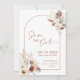 Boho Save the Date (Salve a data) com design moderno e arcaico com papas, terracota e flores ferrugem.