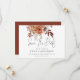 Boho Terracotta Fall Florals QR Code Wedding. Florais lindos com uma vibração boho em tons de terracota e creme no outono e um roteiro elegante para Salvar a Data. O resto do texto que você pode personalizar facilmente com seus detalhes. Adicione seu código QR ao seu site de casamento na parte traseira ou exclua este e o texto na parte traseira, se não for necessário. Disponível digitalmente ou impresso.