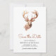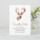 Elegant wedding save the date featuring beautiful deer bust with flowers and modern typography. Simply add your event details on this easy-to-use template to make it a one-of-a-kind save the date card.